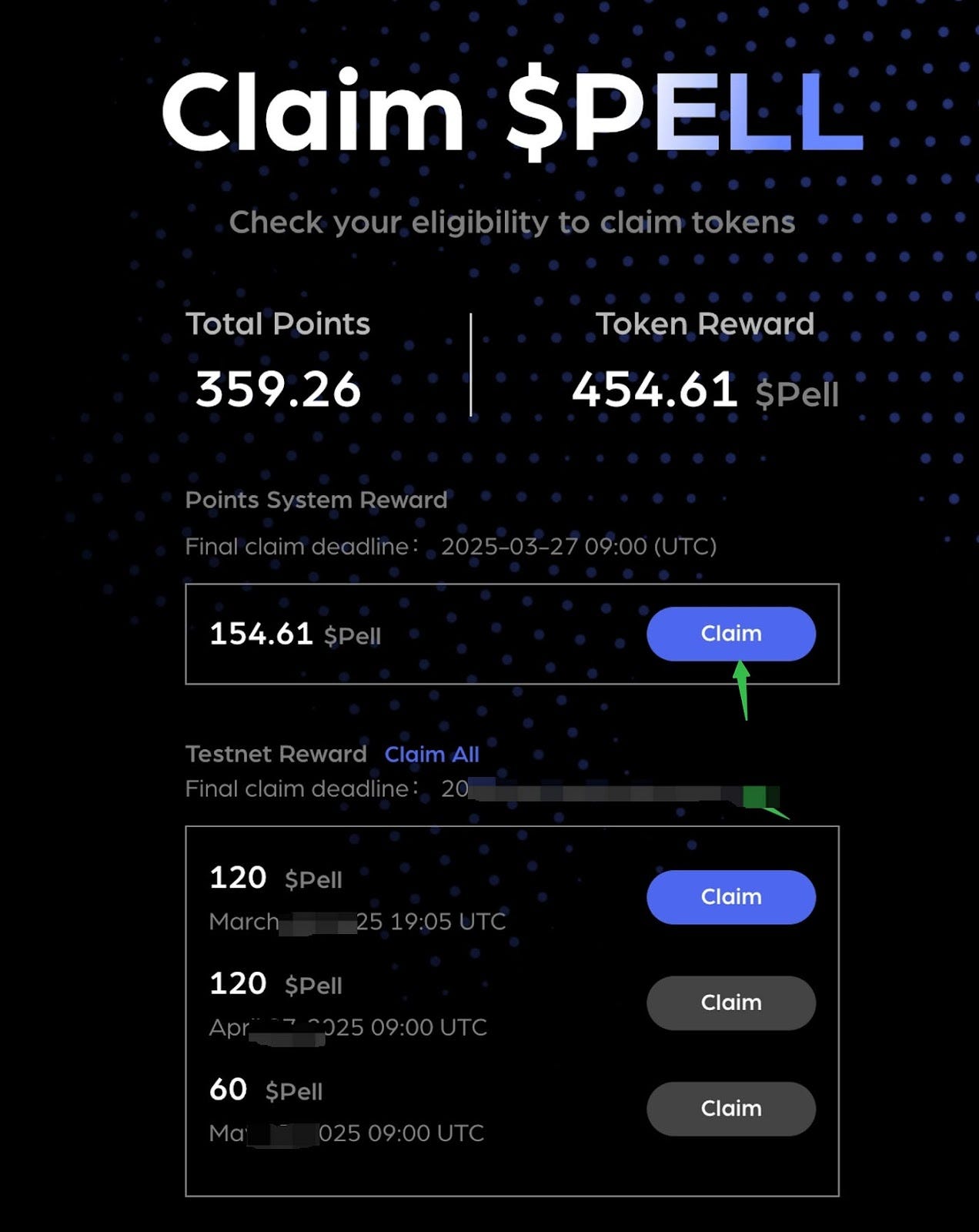 In the Pell Points reward section, click “Claim” to receive your tokens.