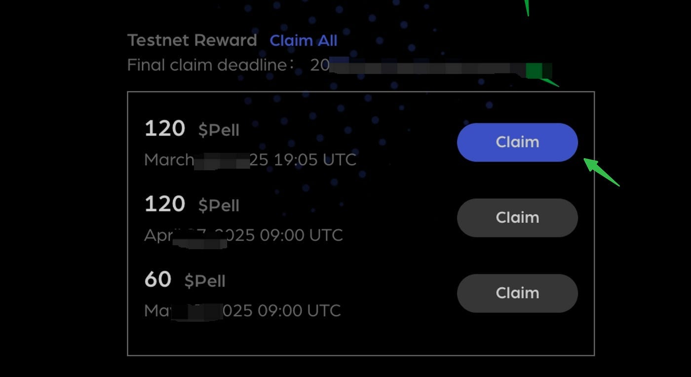 Testnet rewards will be available in different phases. Once the designated claim period starts, click “Claim” to collect them.